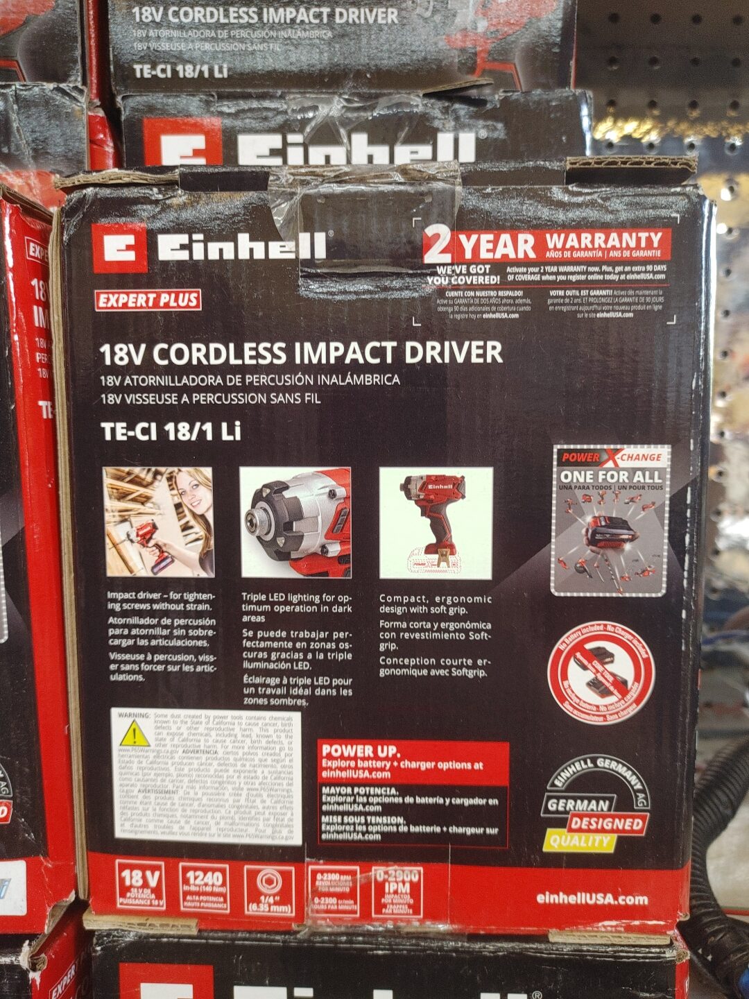 With up to 1,293 inch-pounds (140 Nm) of torque, Einhell’s impact driver delivers the power and performance you need for a variety of applications, soft or solid: from driving and removing fasteners in metal or concrete, to drilling in wood and metal. It features variable-speed control with up to 2,300 rpm and 2,900 impacts-per-minute for faster results tailored to the task. The impact driver comes with a 1/4-inch hexagon tool chuck and adjustable speed control for maximum precision for all materials, with no overstraining or overdriving. The compact, lightweight design reduces fatigue over extended periods of use, and the ergonomic soft grip handle provides maximum comfort and precise control. Powered by Einhell’s Power X-Change family — the versatile battery system for Do-It-Yourself enthusiasts — TE-AG 18/1 Li gives you the freedom to move from the workshop to the worksite without the hassle of a cord – or anywhere power is at a premium. Battery & charger options sold separately.