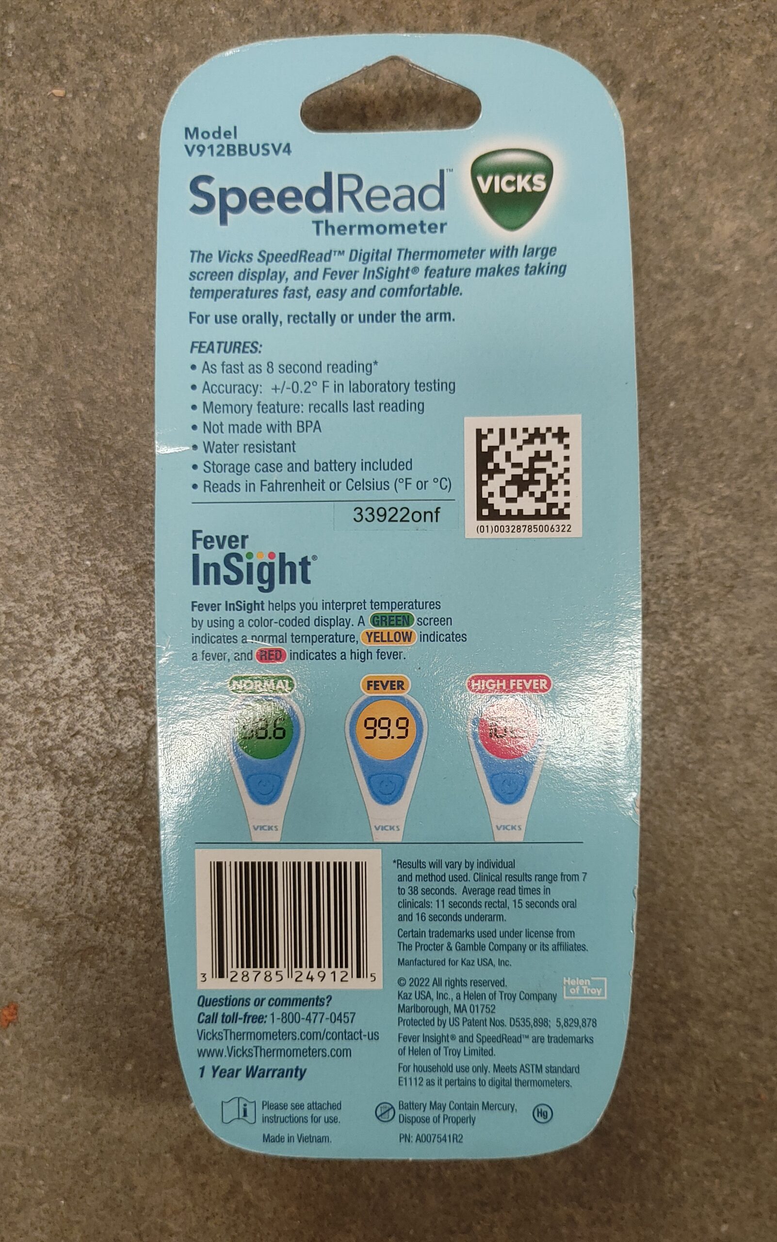 - SPECIAL FEATURES – This Vicks digital thermometer is water resistant for easy, thorough cleaning, and an automatic shut-off for longer battery life. Plus, it includes a battery and has a limited 1 year warranty.